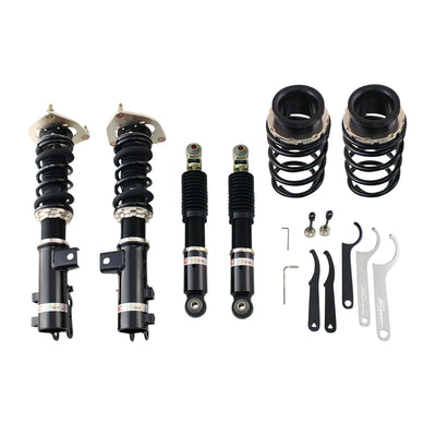 The BC Racing BR Series offers the most affordable entry into coilover suspension without sacrificing performance, comfort, build quality, vehicle height, or handling. This is done by extensively testing each vehicle then refining the coilover characteristics as many times as needed to ensure the most well-balanced and affordable aftermarket suspension conceivable. BC Racing takes great pride in choosing spring rates for our off-the-shelf kits that strike the perfect balance between comfort and performance so you're never stuck with an oversprung suspension like many other brands sell. BC Racing offers one of the widest ranges of damping adjustment with 30-clicks of compression/rebound adjusted simultaneously on the BR Series. With meticulously chosen spring rates, damper valving, and one of the widest adjustment ranges in the industry, you can't go wrong with the BC Racing BR Series Coilover System.