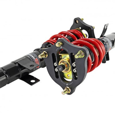 After rigorous testing, we chose to fit linear rate springs instead of progressive. Featuring spring rates of 10kg/mm up front and 8kg/mm in the rear, the linear spring offers more consistency under all different measures of weight loading while cornering and hitting bumps. This offers the most predictable vehicle feedback in all driving situations. Each 2.5-inch spring is made from the highest quality AE9254V Chrome Vanadium forged specifically to work with our oil-nitrogen filled strut to provide the greatest possible balance of street and track performance.