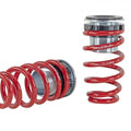 A suspension system is only as strong as its mount to the chassis, so all Pro-ST kits include aluminum, CNC machined, anodized top mounts for maximum strength and protection from the elements. High quality polyurethane bushings are included to keep precise handling and feedback while retaining a cushier feel for the street. Additionally, a padded spring seat at the top and nylon thrust washers at the bottom of each spring reduces friction to eliminate noises from spring bind commonly found in many coilover systems.
