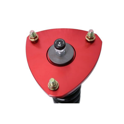 Height adjustments are made with separate CNC Machined locking spring perches for accuracy and smooth adjustment with separate damper shock length adjustment to retain full-stroke and allows for precision suspension tuning. The wide range of allowable ride height adjustment allows for a conservative drop to more aggressive ride heights for an aggressive stance, or to fine tune your suspension for the circuit to gain full potential of your vehicle's handling capabilities.