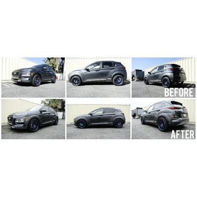 Our EZII Series coilover system for the 2018+ Hyundai Kona has been developed prioritizing ride comfort for those who are seeking to increase the vehicle's exterior aesthetics while still retaining a nice ride. By using rubber front top mounts and OE factory rear mount, road noise is further insulated and kept away from the interior cabin. However with a slight increase of spring rates over stock and sport tuned shock valving, our kit is still more than capable enough for spirited driving or dare we even say track use...