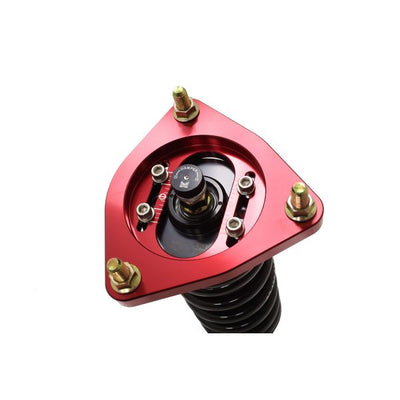 Megan Racing Coil Over Dampers are the ultimate upgrade to your track or street car. Featuring 32 levels of damper force adjustment, camber adjustable pillowball front top mounts and shock length adjustment allowing you to retain full suspension stroke and to fine tune your suspension characteristics. Compression and rebound settings are easily adjusted through a single damper adjustment knob which is built-in at the top of the damper mount for easy access. Adjustments are simple to tune according to your style of driving and desired comfort level whether you are a professional certified mechanic or an automotive enthusiast with amateur mechanical skills.