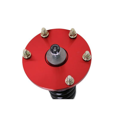 Height adjustments are made with separate CNC Machined locking spring perches for accuracy and smooth adjustment with separate damper shock length adjustment to retain full-stroke and allows for precision suspension tuning. The wide range of allowable ride height adjustment allows for a conservative drop to more aggressive ride heights for an aggressive stance, or to fine tune your suspension for the circuit to gain full potential of your vehicle's handling capabilities.