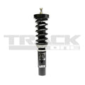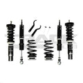 The coilover system is finished with a combination of powder coating, electroplating, and anodizing to give it a great look and protect it. McPherson style struts feature adjustable upper camber plates and pillow ball mounts.