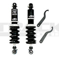 Next we pair the struts with a high-tensile strength steel spring that is designed to last without sagging or premature wear. Springs are tested to ensure there is no coil bind and full range of motion. The high quality strut and dampening allows us to use the proper spring rates needed for each setup that will complement the adjustable dampening rates. Each spring is mounted on adjustable aluminum perches that can be used to adjust preload and travel. Incorporated washer and spacers are in place to keep the system free moving especially on McPherson style struts.
