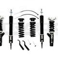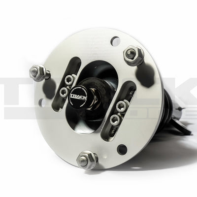 The coilover system is finished with a combination of powder coating, electroplating, and anodizing to give it a great look and protect it. McPherson style struts feature adjustable upper camber plates and pillow ball mounts.