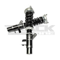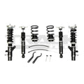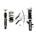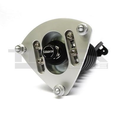 The coilover system is finished with a combination of powder coating, electroplating, and anodizing to give it a great look and protect it. McPherson style struts feature adjustable upper camber plates and pillow ball mounts.