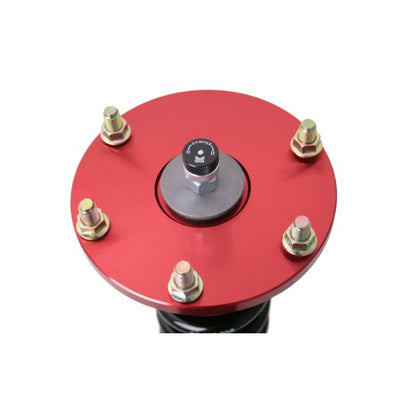 Height adjustments are made with separate CNC Machined locking spring perches for accuracy and smooth adjustment with separate damper shock length adjustment to retain full-stroke and allows for precision suspension tuning. The wide range of allowable ride height adjustment allows for a conservative drop to more aggressive ride heights for an aggressive stance, or to fine tune your suspension for the circuit to gain full potential of your vehicle's handling capabilities.