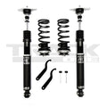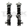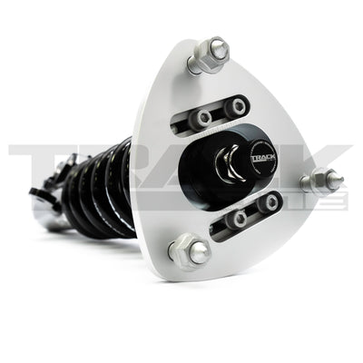 The coilover system is finished with a combination of powder coating, electroplating, and anodizing to give it a great look and protect it. McPherson style struts feature adjustable upper camber plates and pillow ball mounts.