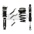 The coilover system is finished with a combination of powder coating, electroplating, and anodizing to give it a great look and protect it. McPherson style struts feature adjustable upper camber plates and pillow ball mounts.