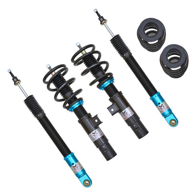 Megan Racing EZ Street suspension systems are fully adjustable coilover systems which do not break the bank. With its full-length adjustable design, the vehicle's ride height can be adjusted without affecting the shock stroke ensuring a retained ride quality at nearly any height. Monotube internal shock construction separates the oil and hi pressured Nitrogen gas chamber preventing aeration. This allows for immediate shock response and damping consistency. 15-click damping force adjustability will also allow the user to fine-tune the ride stiffness and response to his or her preference.